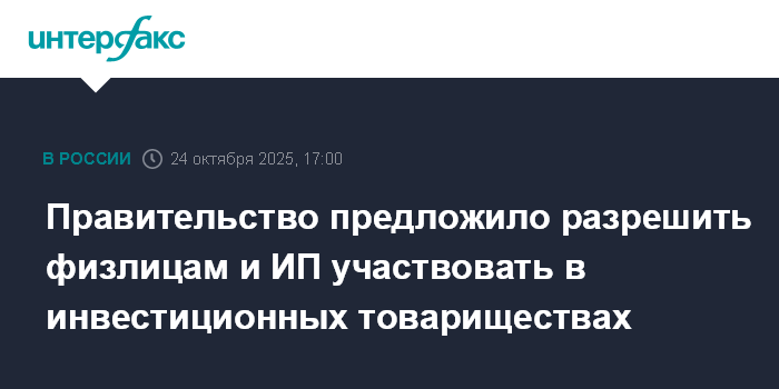 Правительство предложило разрешить физлицам и ИП участвовать в инвестиционных товариществах