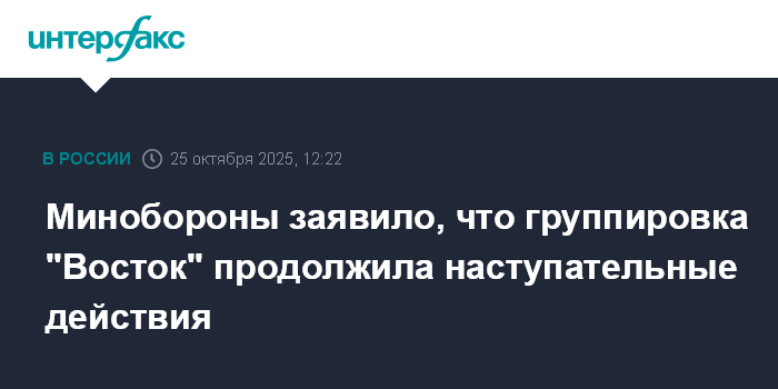 Минобороны заявило, что группировка "Восток" продолжила наступательные действия