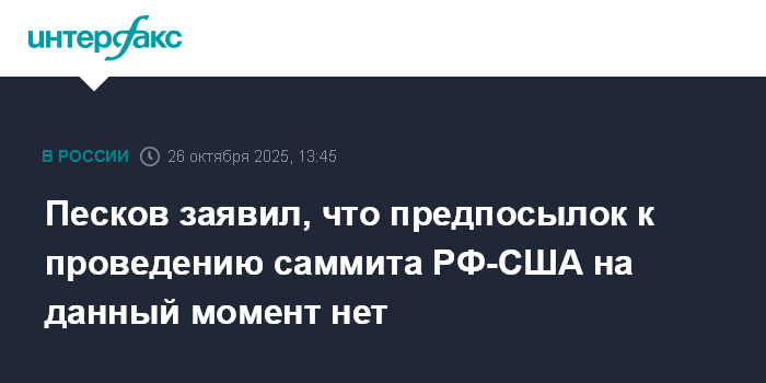 Песков заявил, что предпосылок к проведению саммита РФ-США на данный момент нет