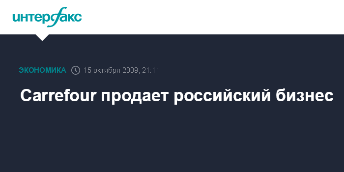 Москва. 15 октября. INTERFAX.RU - Французская Carrefour, крупнейший в Европе ритейлер, которая после долгих лет анализа рынка и подготовительной работы в 2009 г. вышла на российский рынок, приняла решение продать свой бизнес в России.