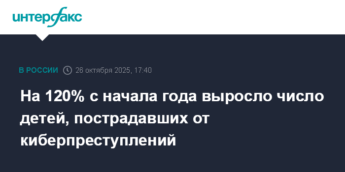 Москва. 26 октября. INTERFAX.RU - В полиции зафиксировали более чем двукратный рост числа несовершеннолетних, пострадавших от действий кибермошенников, с начала года по сравнению с предыдущим, сообщили в управлении по организации борьбы с противоправным использованием информационно-коммуникационных технологий (УБК) МВД России.
