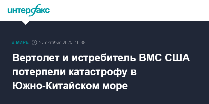 Вертолет и истребитель ВМС США потерпели катастрофу в Южно-Китайском море