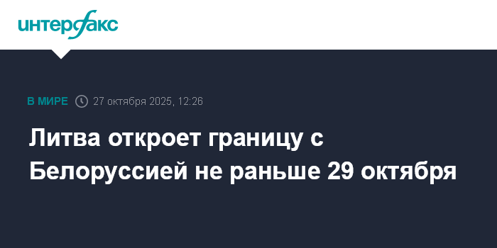 Москва. 27 октября. INTERFAX.RU - Закрытие литовско-белорусской границы продлится как минимум до среды, 29 октября, сообщила после совещания Комиссии по национальной безопасности премьер-министр Литвы Инга Ругинене. Об этом сообщают литовские СМИ.