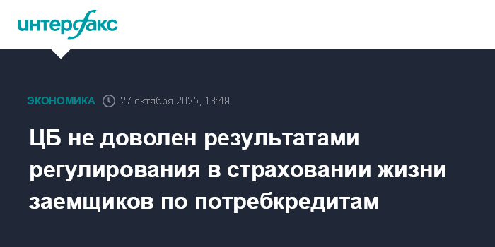 ЦБ не доволен результатами регулирования в страховании жизни заемщиков по потребкредитам