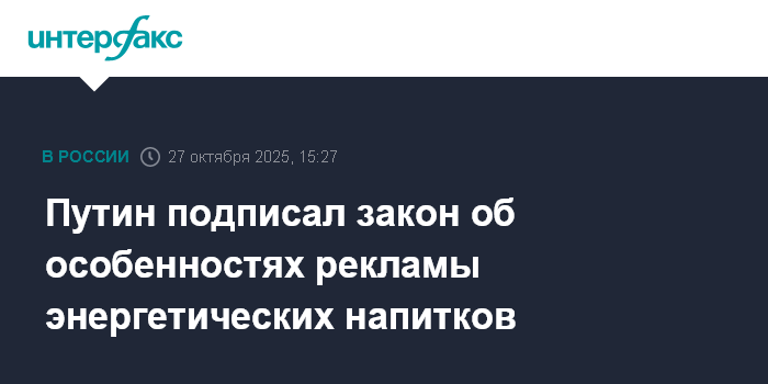 Путин подписал закон об особенностях рекламы энергетических напитков