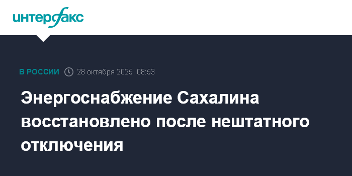 Энергоснабжение Сахалина восстановлено после нештатного отключения