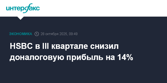 Москва. 28 октября. INTERFAX.RU - Британский банк HSBC Holdings Plc в третьем квартале 2025 года сократил доналоговую прибыль на 14% из-за резервирования $1,1 млрд на покрытие расходов в рамках судебных разбирательств по делу о финансовой пирамиде американца Бернарда Мэдоффа.
