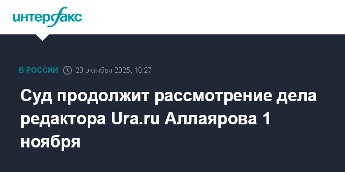 Суд продолжит рассмотрение дела редактора Ura.ru Аллаярова 1 ноября