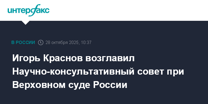 Москва. 28 октября. INTERFAX.RU - Председатель Верховного суда России Игорь Краснов возглавил Научно-консультативный совет при Верховном суде Российской Федерации.