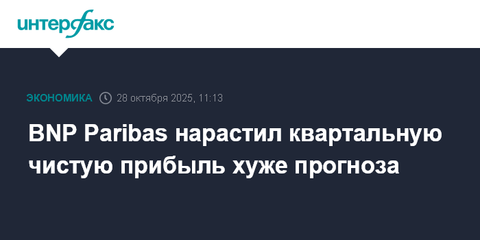 Москва. 28 октября. INTERFAX.RU - Французский банк BNP Paribas SA в третьем квартале 2025 года увеличил чистую прибыль на 6,1%, выручку - на 5,3%, при этом оба показателя оказались хуже ожиданий рынка.