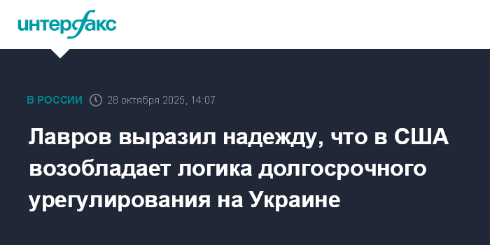 Москва. 28 октября. INTERFAX.RU - Москва надеется, что логика долгосрочного урегулирования ситуации на Украине возобладает в Вашингтоне, заявил министр иностранных дел РФ Сергей Лавров.