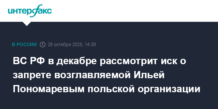 ВС РФ в декабре рассмотрит иск о запрете возглавляемой Ильей Пономаревым польской организации