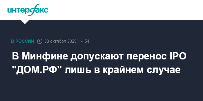 Москва. 28 октября. INTERFAX.RU - Перенос IPO госкорпорации "ДОМ.РФ" на 2026 год может произойти только в крайнем случае, текущая волатильность, основанная на комментариях зарубежных лидеров, не помешает сделке, сказал журналистам замминистра финансов Алексей Моисеев в кулуарах инвестиционного форума "Россия зовет!" в Казани.
