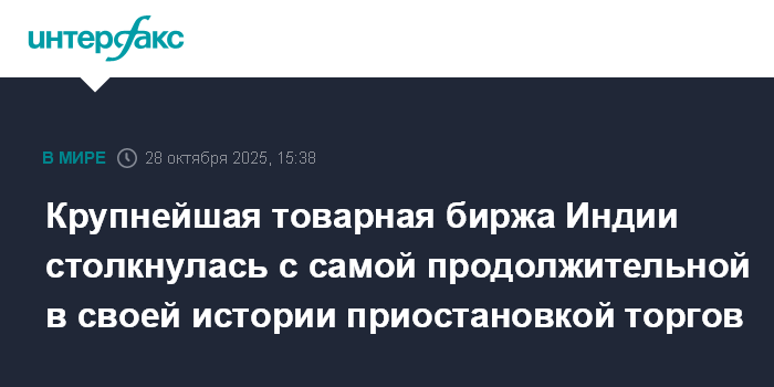 Крупнейшая товарная биржа Индии столкнулась с самой продолжительной в своей истории приостановкой торгов