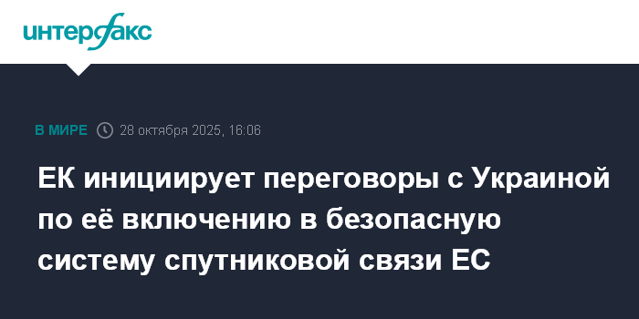 ЕК инициирует переговоры с Украиной по её включению в безопасную систему спутниковой связи ЕС