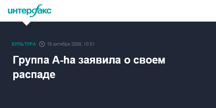 Москва. 16 октября. INTERFAX.RU - Участники легендарной норвежской группы A-ha заявили о том, что после 25 лет существования, коллектив решил прекратить существование, сообщает ВВС. Прежде чем прекратить существование, трио отправится в прощальный тур.