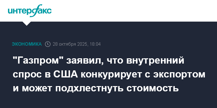 "Газпром" заявил, что внутренний спрос в США конкурирует с экспортом и может подхлестнуть стоимость