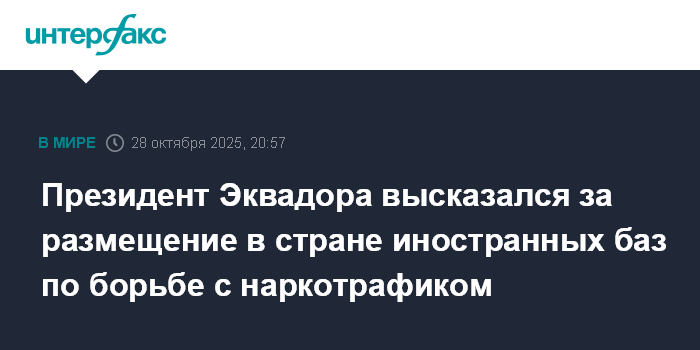 Президент Эквадора высказался за размещение в стране иностранных баз по борьбе с наркотрафиком
