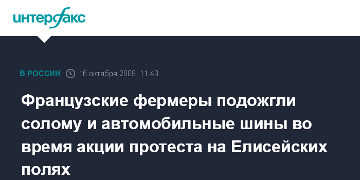 Желая привлечь внимание общественности к проблемам сельского хозяйства во Франции, они перекрыли движение автотранспорта по Елисейским полям и подожгли на дороге солому и автомобильные шины.