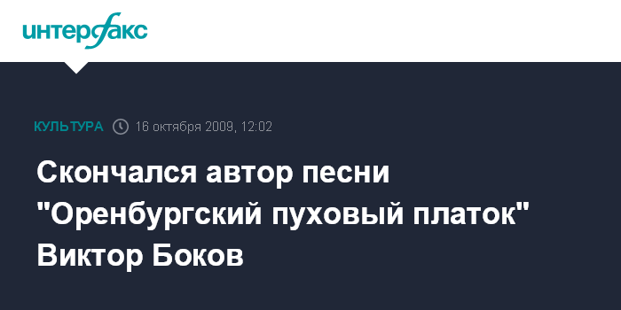 Скончался автор песни "Оренбургский пуховый платок" Виктор Боков