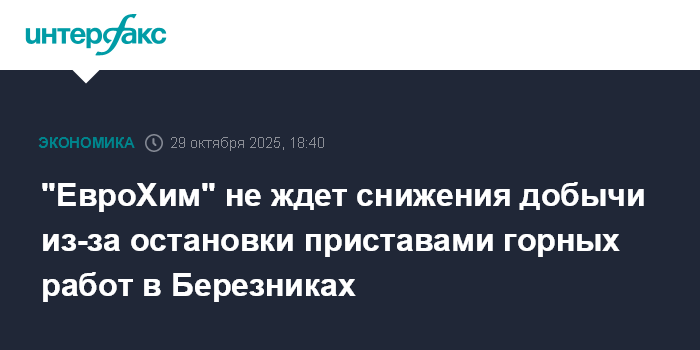 "ЕвроХим" не ждет снижения добычи из-за остановки приставами горных работ в Березниках