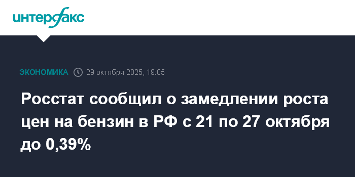 Росстат сообщил о замедлении роста цен на бензин в РФ с 21 по 27 октября до 0,39%