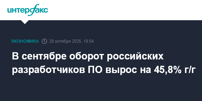В сентябре оборот российских разработчиков ПО вырос на 45,8% г/г