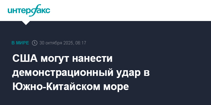 Москва. 30 октября. INTERFAX.RU - Индо-Тихоокеанское командование ВС США на этой неделе в закрытом порядке отдало приказ провести "демонстрацию силы" в Южно-Китайском море, при этом объект возможного удара неизвестен, сообщает телеканал CBS со ссылкой на информированные источники.