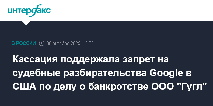 Кассация поддержала запрет на судебные разбирательства Google в США по делу о банкротстве ООО "Гугл"