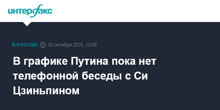 Москва. 30 октября. INTERFAX.RU - В графике президента Владимира Путина пока нет планов по телефонному разговору с председателем КНР Си Цзиньпином, который недавно провел переговоры с президентом США Дональдом Трампом, но при необходимости такой контакт может быть оперативно согласован.