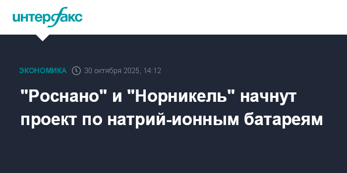 "Роснано" и "Норникель" начнут проект по натрий-ионным батареям