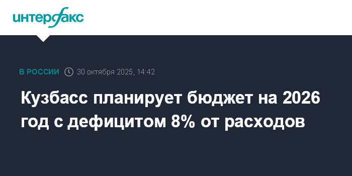 Кузбасс планирует бюджет на 2026 год с дефицитом 8% от расходов