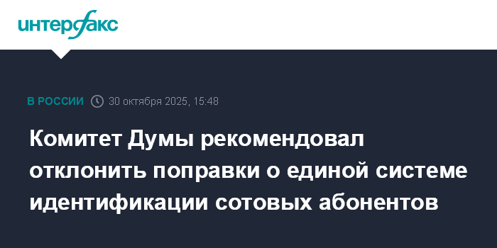 Москва. 30 октября. INTERFAX.RU - Комитет Госдумы по финансовому рынку предложил отклонить законопроект № 514780-7 о создании в России единой системы проверки сведений об абонентах, указав, что с момента его принятия в первом чтении в 2019 году уже сформирована и реализуется система идентификации абонентов и предотвращения мошенничества в сфере связи и финансов.