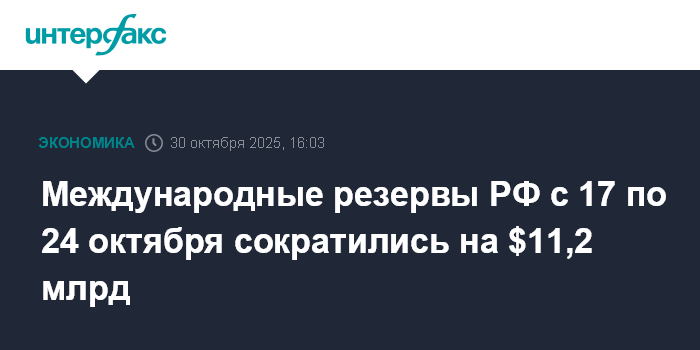 Международные резервы РФ с 17 по 24 октября сократились на $11,2 млрд
