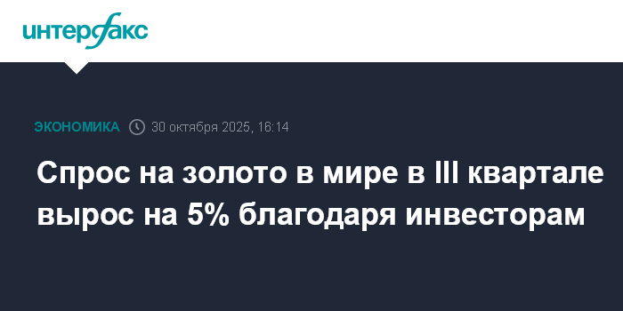 Москва. 30 октября. INTERFAX.RU - Мировой спрос на золото без учета внебиржевых сделок (OTC) в III квартале 2025 года составил 1,26 тысячи тонн, что на 5% превышает результат соответствующего периода прошлого года, подсчитал World Gold Council (WGC).