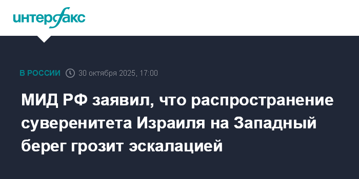 МИД РФ заявил, что распространение суверенитета Израиля на Западный берег грозит эскалацией