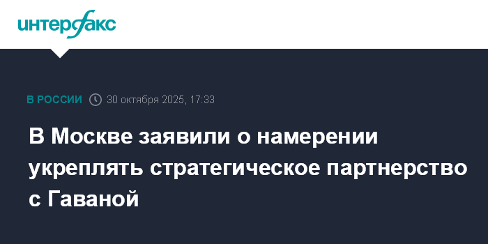 В Москве заявили о намерении укреплять стратегическое партнерство с Гаваной