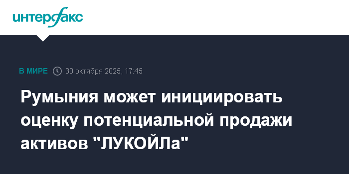 Румыния может инициировать оценку потенциальной продажи активов "ЛУКОЙЛа"