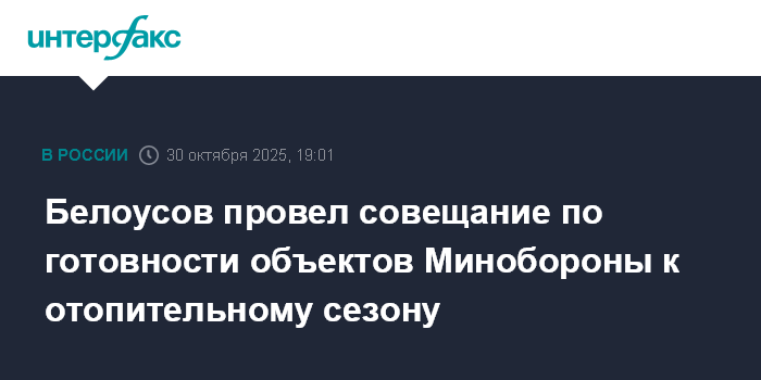 Москва. 30 октября. INTERFAX.RU - Министр обороны Российской Федерации Андрей Белоусов провел рабочее совещание по готовности фондов Минобороны России к отопительному периоду 2025-2026 годов, сообщило ведомство.