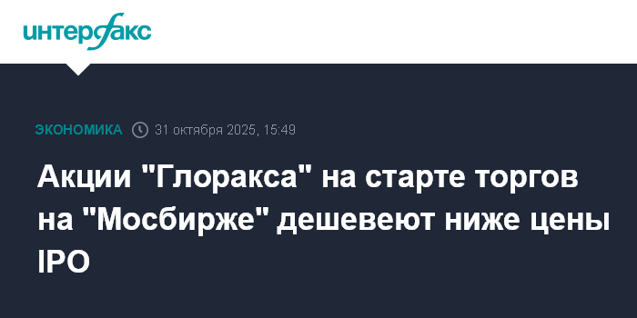 Акции "Глоракса" на старте торгов на "Мосбирже" дешевеют ниже цены IPO