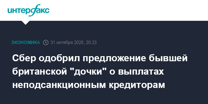 Сбер одобрил предложение бывшей британской "дочки" о выплатах неподсанкционным кредиторам