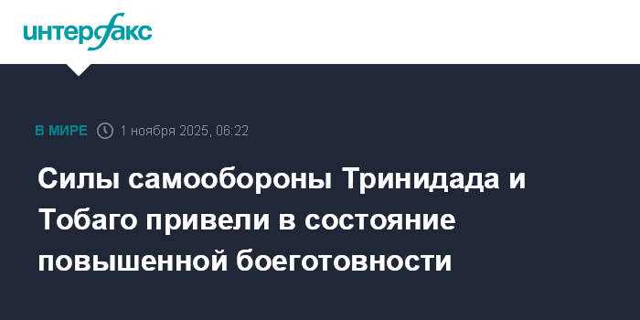 Москва. 1 ноября. INTERFAX.RU - Силы самообороны Тринидада и Тобаго переведены на "наивысший уровень оперативной боевой готовности", сообщило местное издание Daily Express издание, ссылаясь на высокопоставленные источники.