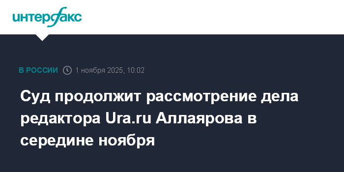 Суд продолжит рассмотрение дела редактора Ura.ru Аллаярова в середине ноября