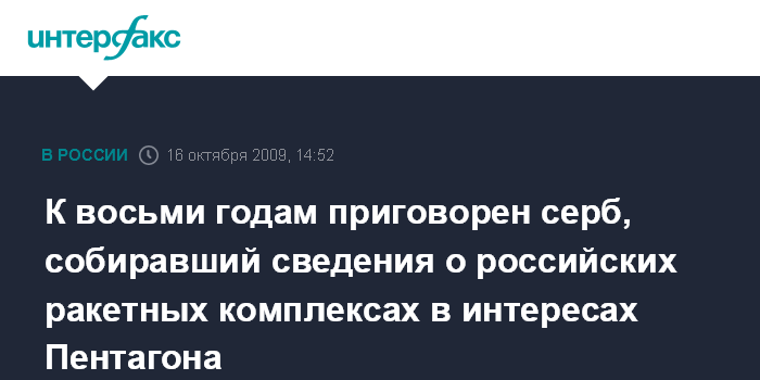 К восьми годам приговорен серб, собиравший сведения о российских ракетных комплексах в интересах Пентагона