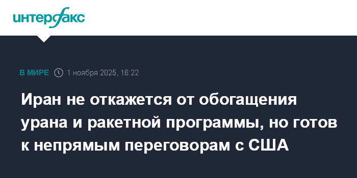 Москва. 1 ноября. INTERFAX.RU - Глава МИД Ирана Аббас Аракчи заявил, что Тегеран намерен продолжать обогащение урана и развивать ракетную программу, однако не отказывается от возможности добиться компромисса с США по ядерной проблематике.