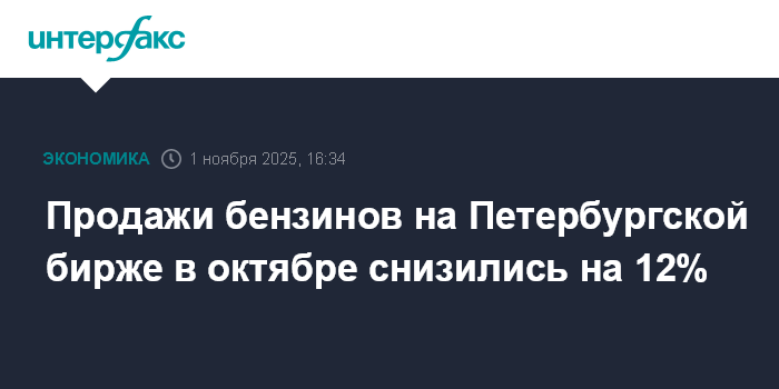 Продажи бензинов на Петербургской бирже в октябре снизились на 12%