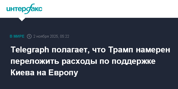 Москва. 2 ноября. INTERFAX.RU - В последнее время политика президента США Дональда Трампа в отношении Украины стала более определенной: он хочет, чтобы Вашингтон не тратился на поддержку Киева, а основное финансовое бремя взяла на себя Европа, пишет The Telegraph.