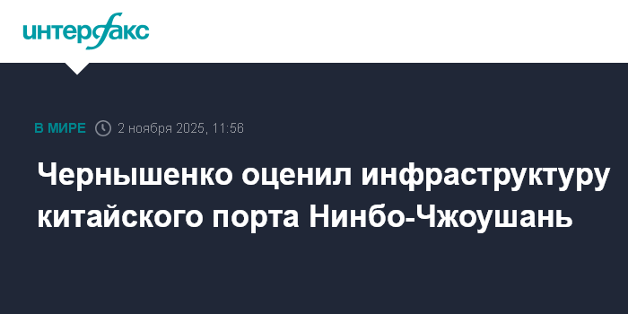Москва. 2 ноября. INTERFAX.RU - Вице-премьер России Дмитрий Чернышенко прибыл с рабочим визитом в город Нинбо (КНР), где оценил инфраструктуру порта Нинбо-Чжоушань, сообщается в воскресенье в телеграм-канале российского кабинета министров.