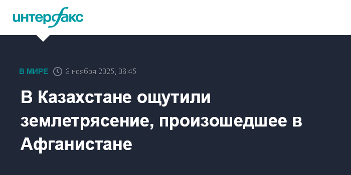 Москва. 3 ноября. INTERFAX.RU - На юге Казахстана в ночь на понедельник ощущалось землетрясение, произошедшее в Афганистане, сообщила пресс-служба казахстанского МЧС.