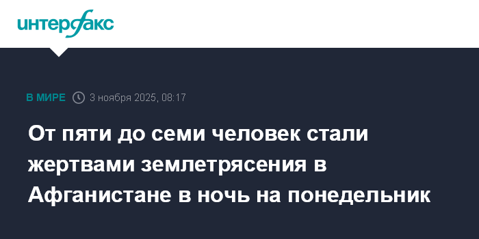 От пяти до семи человек стали жертвами землетрясения в Афганистане в ночь на понедельник